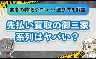 先払い買取の「御三家」とは何か?危険とされる理由やトラブル事例、口コミ評判を徹底解説。安心して使える先払い買取優良21社の紹介や、トラブル回避のポイントも網羅。先払い買取を安心して利用したい方はぜひ参考にしてください。